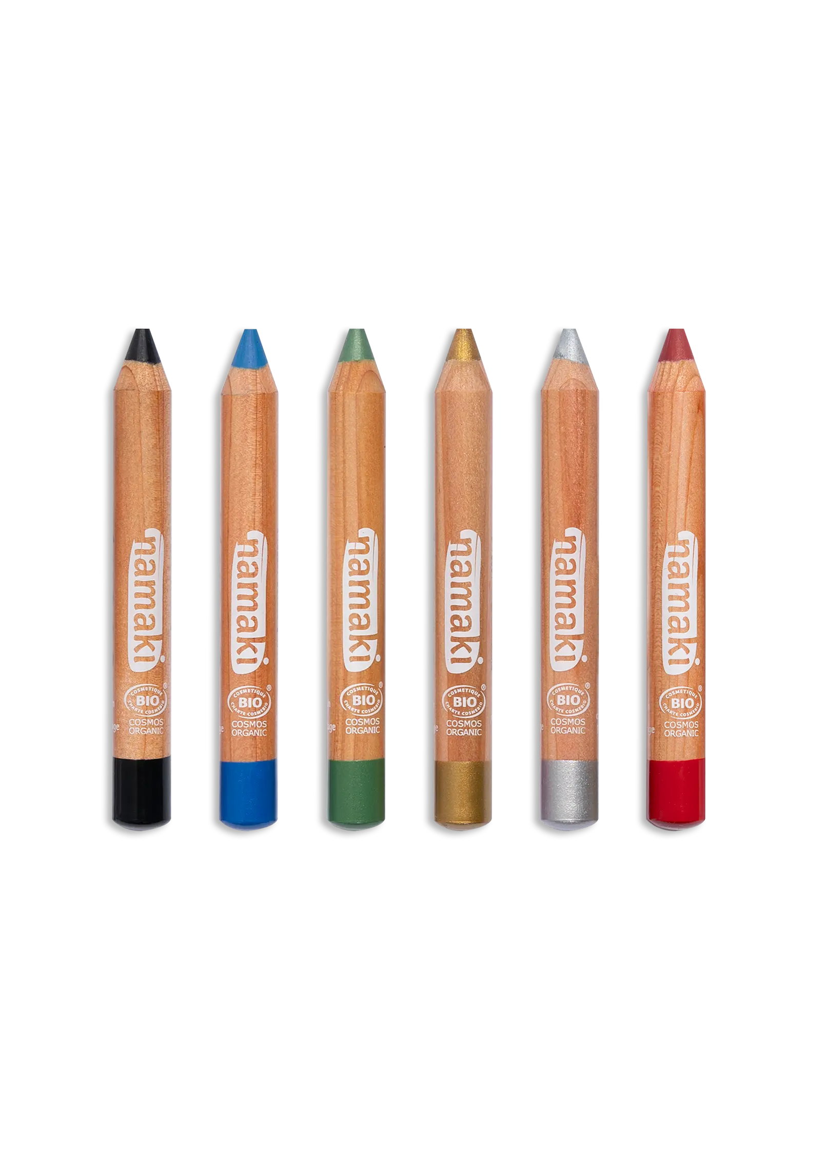 Poder disfrazarse respetando la delicadeza de la piel sin renunciar a colores vivos, festivos y llamativos es importante desde temprana edad. Certificados por Bio Cosmos, los crayones de maquillaje para niños de Namaki, en formato Jumbo o delgado, aportan el toque final imprescindible para los disfraces de fiesta. Disponibles en kits de seis colores o por unidad, los catorce colores permiten trazar y dibujar con facilidad.