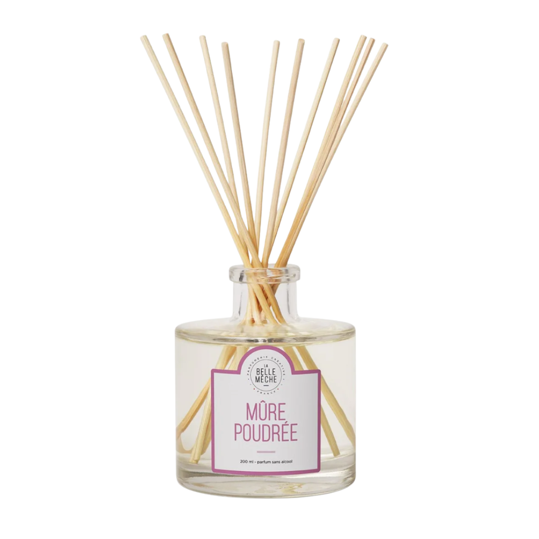 El difusor de perfume Mûre Poudrée retoma el icónico acorde de mora y almizcle. En la salida, un fresco y cítrico acorde de frutas del bosque aporta ligereza y chispa al perfume. ¡Un aroma dulce a piel, cabello, mamá, niña, algo un poco animal! Un difusor de perfume perfecto para un dormitorio o un salón pequeño.