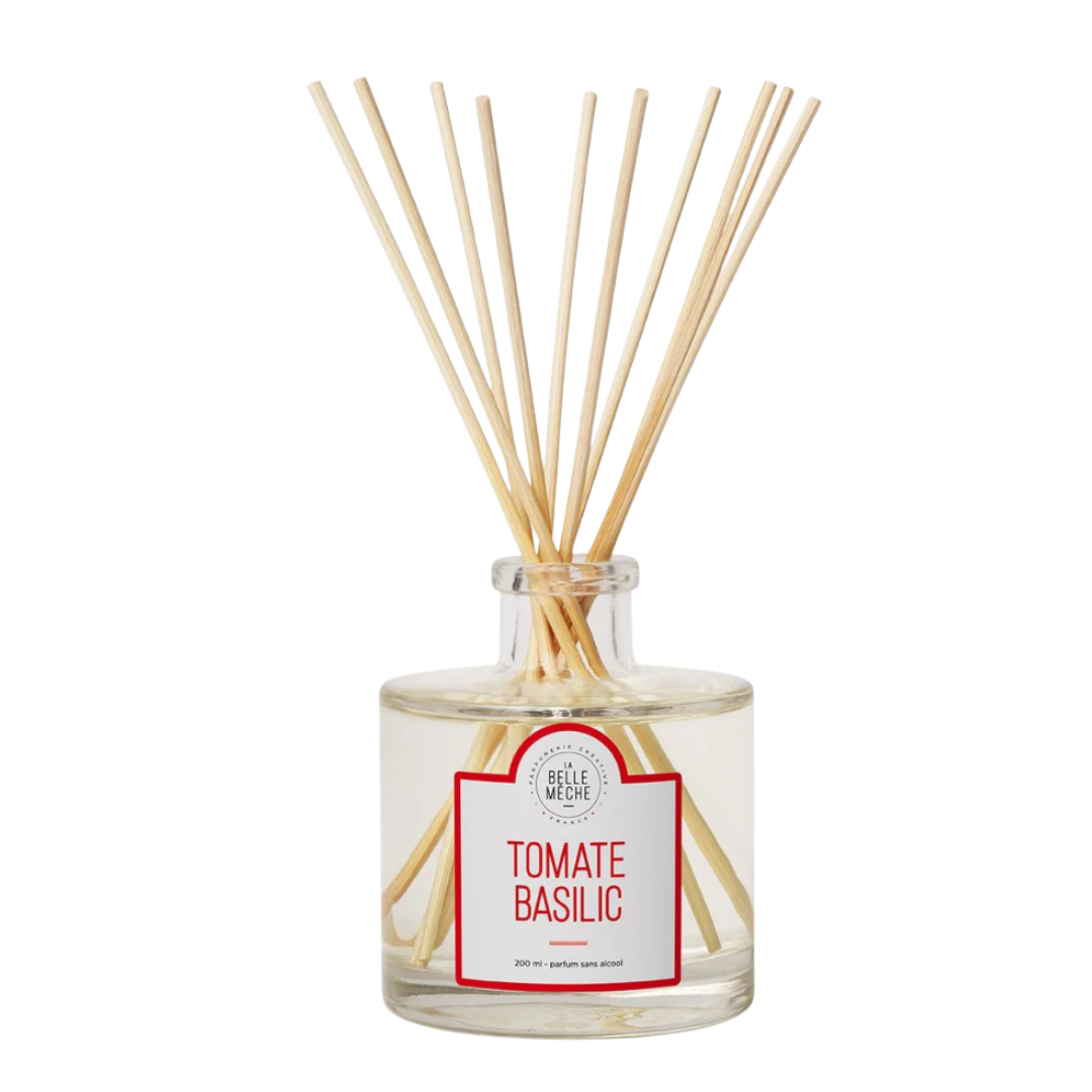 Este difusor de perfume recuerda los aromas del huerto de nuestras abuelas en un cálido día de verano. Notas frescas de hojas de albahaca mezcladas con el tallo verde del tomate. A continuación, las notas de grosella negra e higo en el fondo suavizan este intrigante difusor.