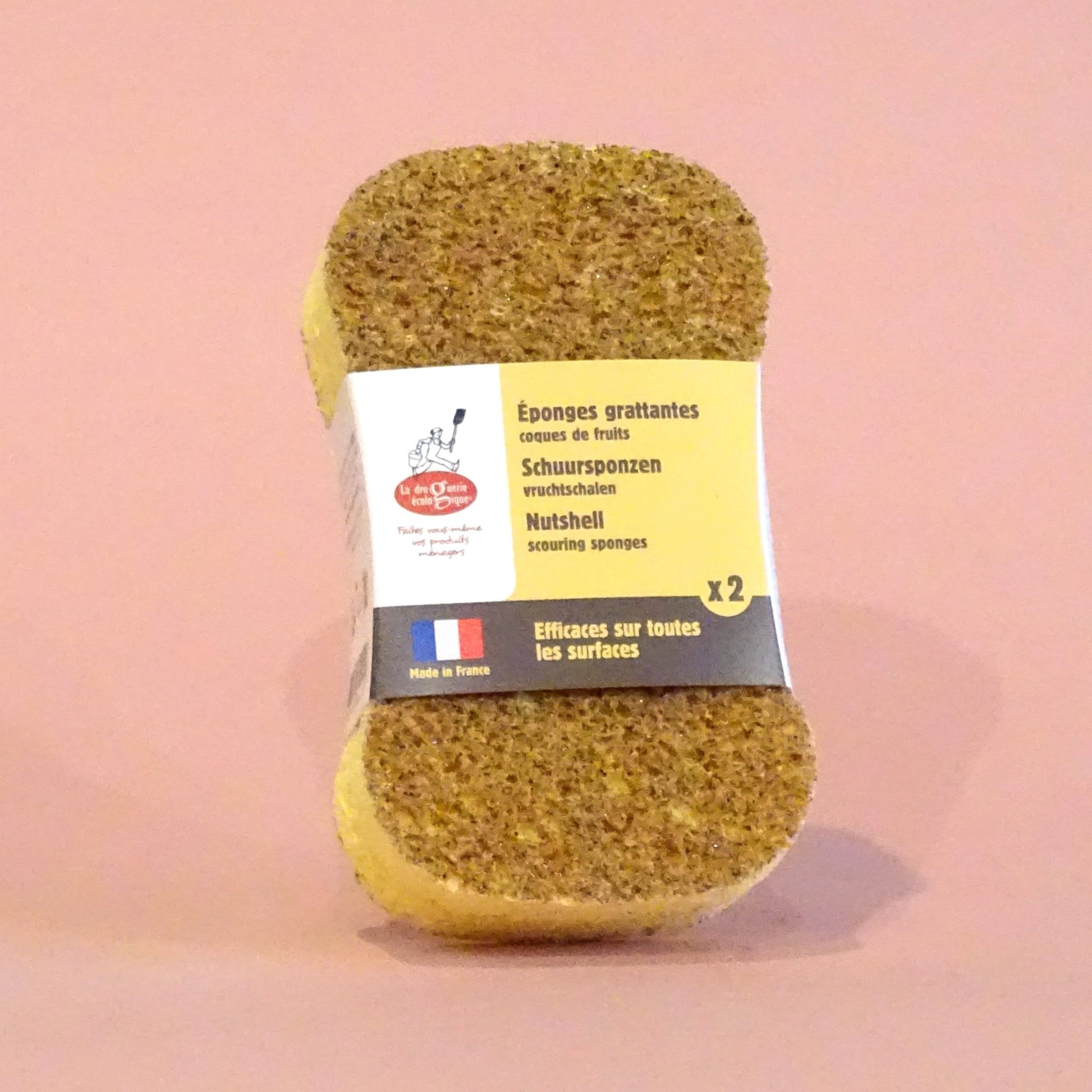 Nuestra esponja ecológica es eficiente, duradera y respetuosa con el medio ambiente. Gracias a las cáscaras de fruta finamente trituradas, frota de manera efectiva todas las superficies sin rayar.