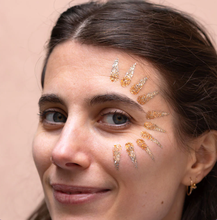 Fabricado en Francia, elaborado a partir de extractos de karité y purpurina vegetal, fácil de aplicar y de larga duración.
