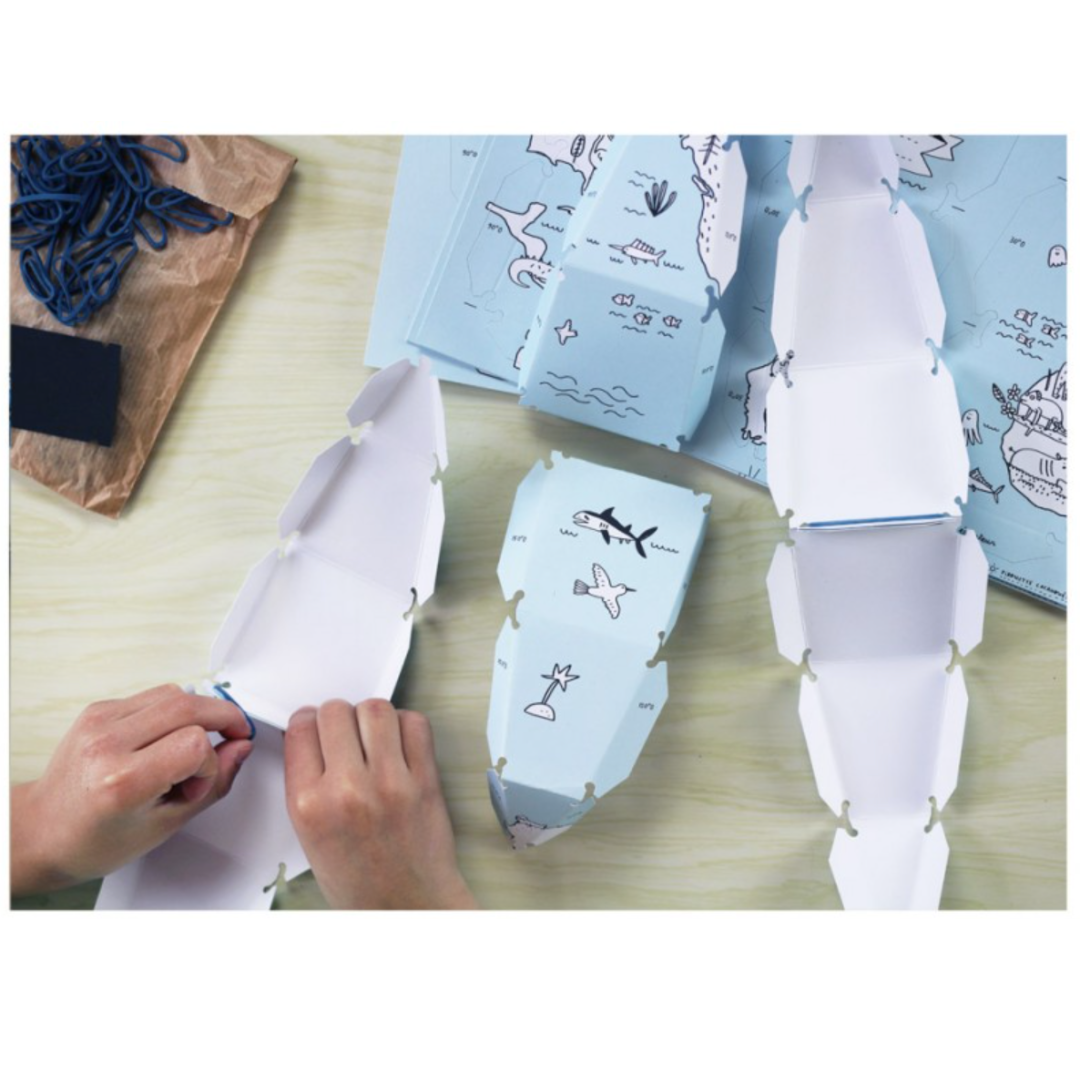 Un auténtico juego de construcción 3D de papel cuyo ingenioso montaje se realiza sin pegamento.
