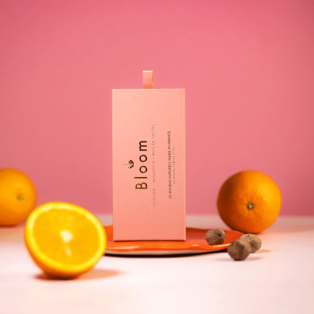 Bubble Shell te invita a viajar a las lejanas tierras de Oriente. Un viaje místico a un jardín boscoso, adornado con nuez moscada de aroma embriagador y mandarinas ácidas. Diseñadas como un perfume, con notas de salida, corazón y fondo, las varitas de incienso Bloom son sutiles y ligeras. Cada una de ellas invita a la relajación y la calma sin resultar empalagosas, al tiempo que purifican el espacio.