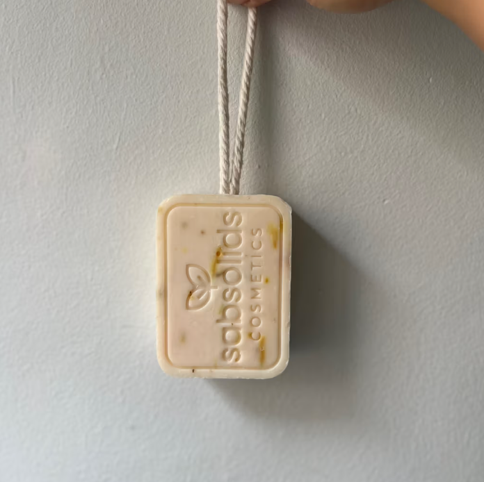 Su formato es grande, práctico y bonito, con una pastilla de 170 g y cuerda para colgar, ideal para un uso cómodo y duradero tanto en el baño como en la ducha.