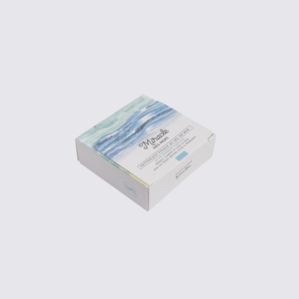 El Milagro de los Mares "Miracle des mers" es una solución limpiadora y reguladora a base de sal marina no refinada. Ideal para purificar tu rostro, es especialmente adecuado para pieles grasas y con acné. Las propiedades purificadoras y desintoxicantes del Milagro de los Mares se potencian gracias a los aceites esenciales de Geranio bourbon, Neroli y Yuzu, cargados de antioxidantes reparadores y protectores. El aceite de Aguacate y Coco orgánico, combinado con la manteca de Karité no refinada, protege contra las agresiones externas a las que se enfrentan las pieles sensibles. Estos activos orgánicos nutren, protegen y estimulan la renovación celular de la epidermis. Actuando como un verdadero tratamiento termal gracias a su alta concentración de sal marina salvaje, ofrece una limpieza profunda, descongestionando los poros y reduciendo las imperfecciones del acné. Este jabón de sal marina también contiene carbón de bambú, que equilibra el exceso de sebo de las pieles mixtas y grasas y elimina todas las toxinas acumuladas en la piel.