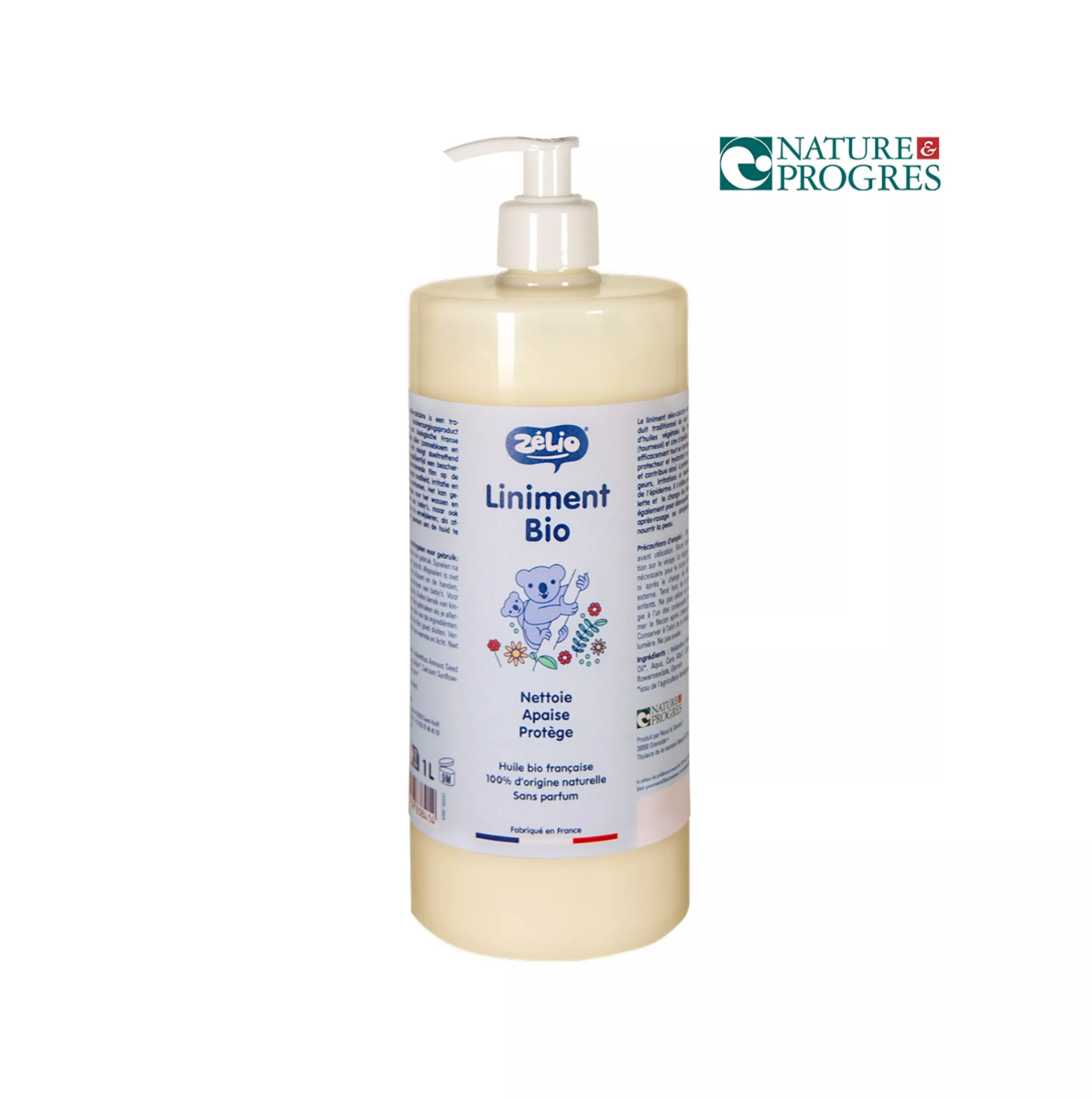El linimento es un producto tradicional y polivalente para el cuidado de la piel elaborado con aceite vegetal y agua de cal. El linimento Anaé® no contiene conservantes, emulgentes ni perfumes y contiene aceites ecológicos y franceses. Respeta tanto la piel de los bebés como la de la familia.