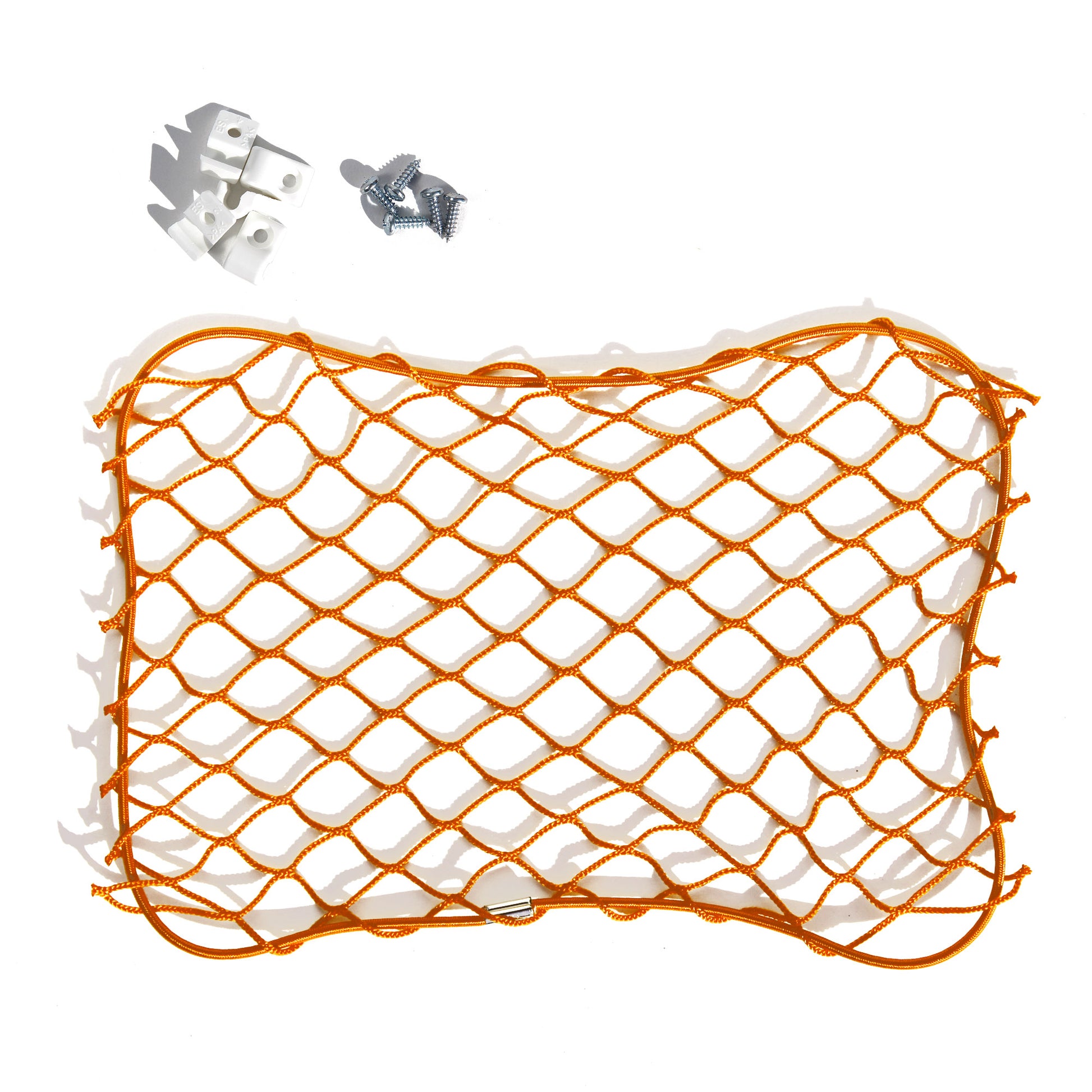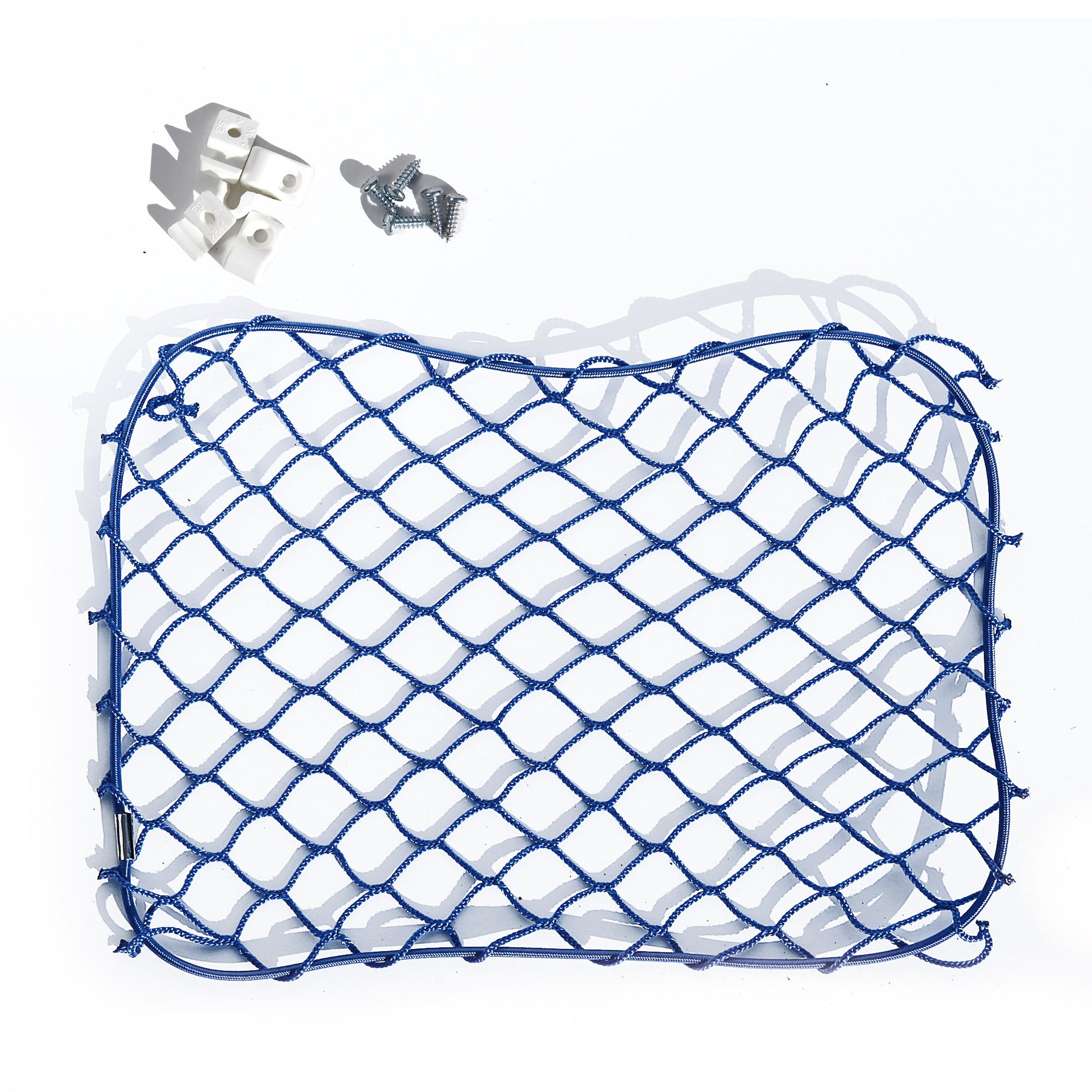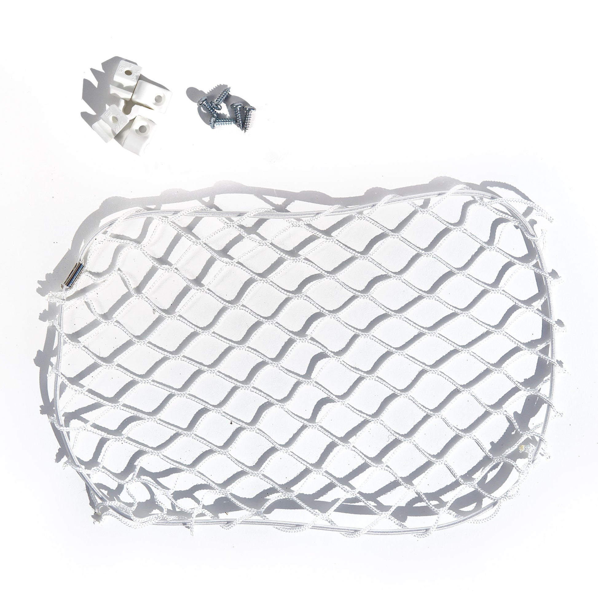 Red de almacenamiento "vacía bolsillos", con marco metálico en color negro o blanco. Red de nylon en negro o blanco.