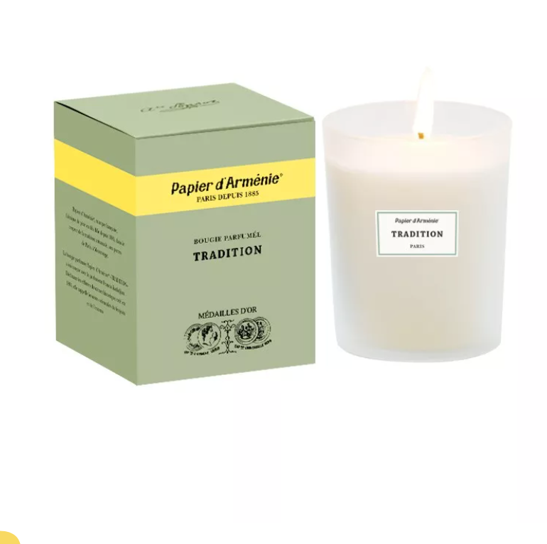 Fiel al espíritu de Papier d'Arménie®, la vela Tradition se acerca al universo olfativo del mítico cuaderno.
